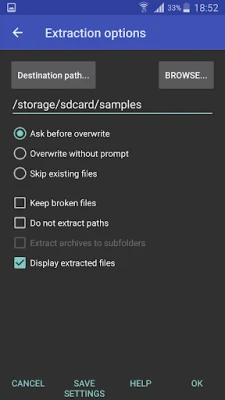 Additionally to standard ZIP files, unzip function supports ZIP and ZIPX with BZIP2, LZMA, PPMd and XZ compression also as password protected ZIP. Unrar command is available for all versions of RAR archives including the latest RAR5, password protected and multipart files.