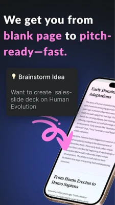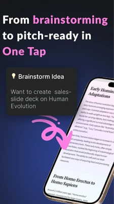 Just enter your topic or notes and watch AI transform your ideas into a ready-to-share deck.