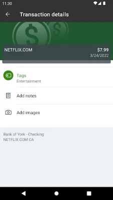 · Keep your transactions organized by allowing you to add tags, notes and photos of receipts and checks.