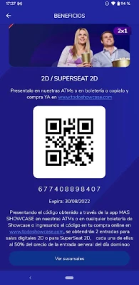 - 2x1 en cines Showcase - 2x1 en cines IMAX - 2x1 en heladerías Chungo - 2x1 en Bowling & Co - 2x1 en Videostation