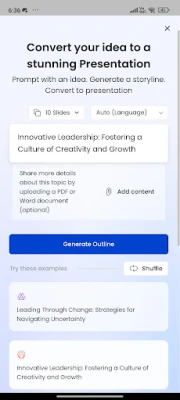 Simply describe your presentation topic, and our advanced AI instantly creates professional slides with stunning visuals, smart layouts, and engaging content. No more starting from blank slides - let artificial intelligence do the heavy lifting while you focus on your message.