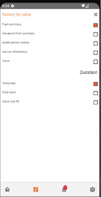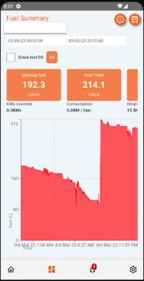 Mobile app interface for our fuel monitoring, alerting and consumption analysis solution