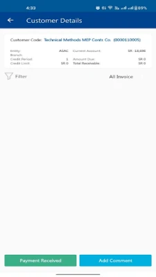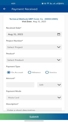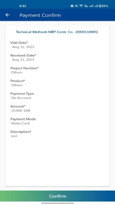 • Review AR and Payments by Sales Engineers and Collectors • Real time tracking of payments approval or rejection status by Credit Controls team based on payment delivery status • Immediate reflection on organizational database • Not limited with a payment method. Applies on (Cash, MADA & Bank Transfer)
