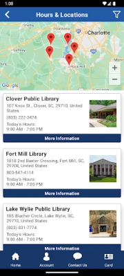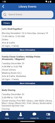 -Search the library catalog and reserve items -Add one or more library accounts to your device, allowing you to manage holds, checkouts, and more -View and register for events at the library -See information about hours, location, and services offered -Checkout items using Mobile Checkout -Access online learning resources and so much more!